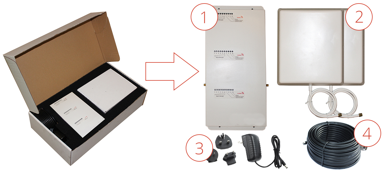 The 3-band amplifier amplifies the signals and rebroadcasts them in the area where you need coverage.