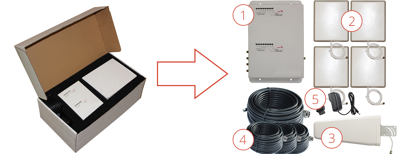 The 2-band amplifier amplifies the signals and rebroadcasts them in the area where you need coverage.