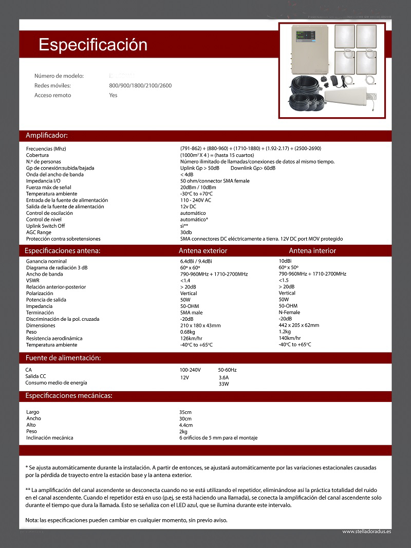 Note: The amplifier is compatible with the technologies and networks specified above, however, it is possible that due to the deployment of the companies' networks some of the technologies are not available (no 3G or 4G). To know the ideal frequencies for each particular case, please visit our guides for Android and iPhone.